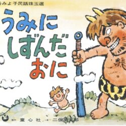 「うみにしずんだおに」(紙芝居) 松谷みよ子・再話 二俣英五郎・絵 (童心社 1973) 海が荒れて困っている村人のはなしを聞き、鬼の親子は嵐の海に大岩をかついで入って行きましたが… (石)